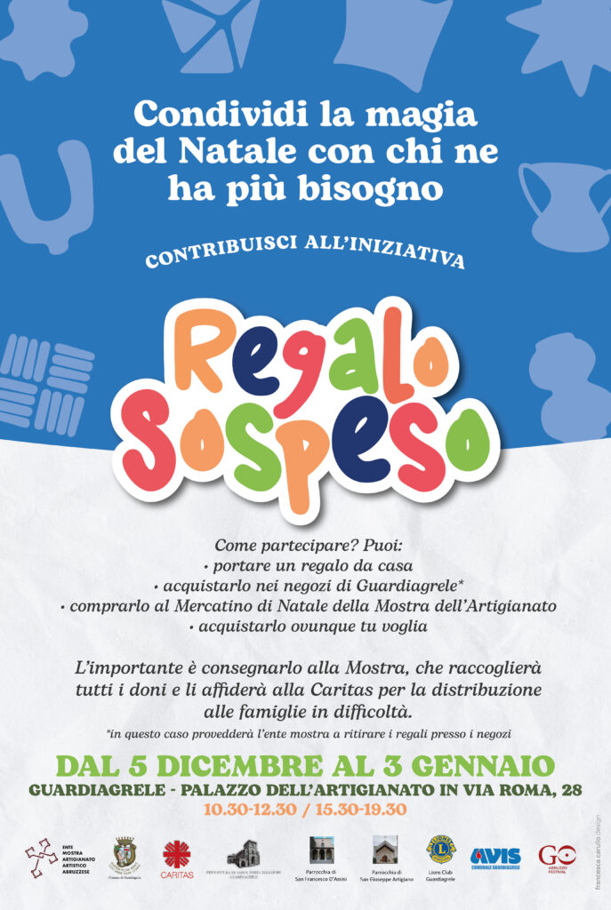 L’Iniziativa è promossa dall’Ente Mostra dell’Artigianato Artistico abruzzese in collaborazione con il Comune di Guardiagrele, la Caritas interparrocchiale, la Parrocchia di Santa Maria Maggiore, la Parrocchia di San Francesco d’Assisi, Parrocchia San Giuseppe Artigiano, l’AVIS, l’Asscociazione GO Abruzzo, il Lions Club di Guardiagrele e tutte le attività commerciali.